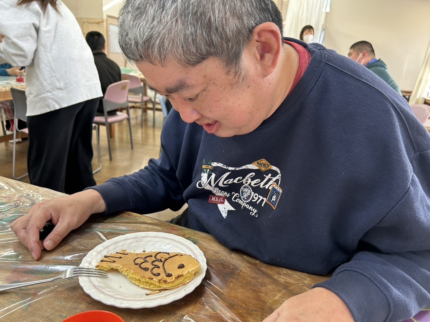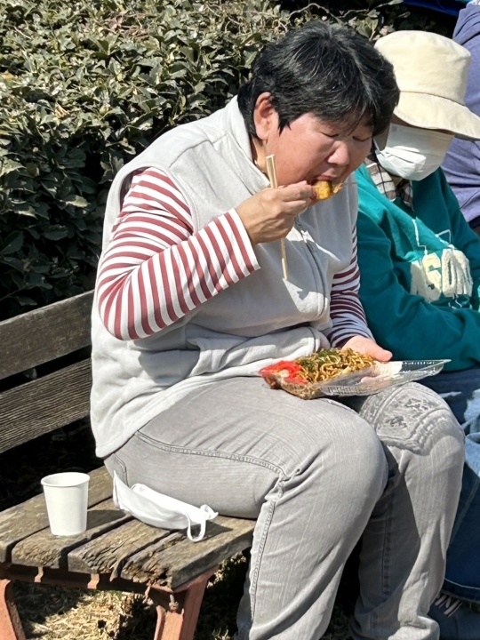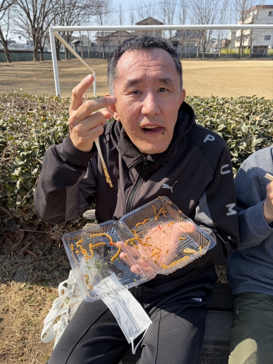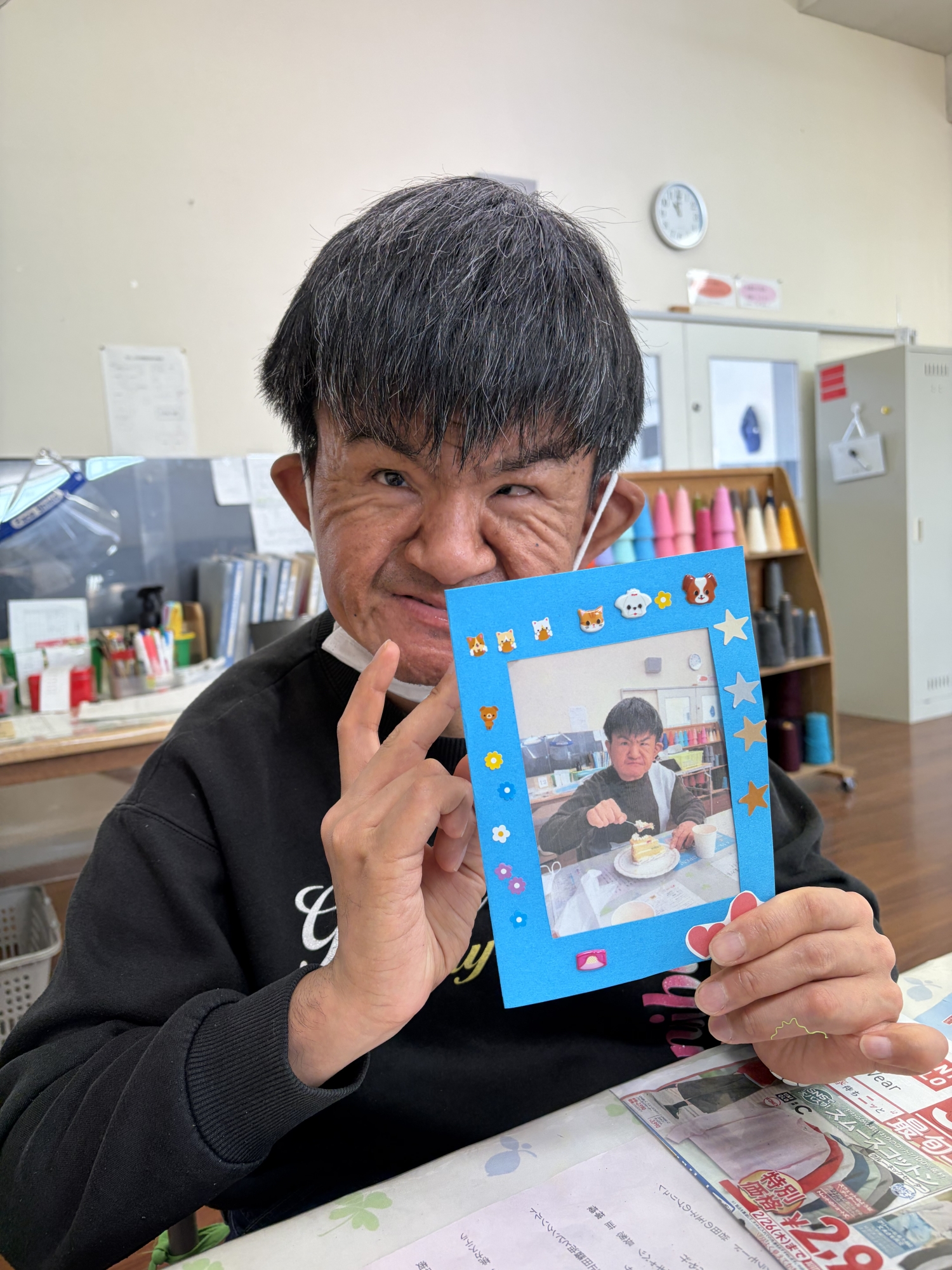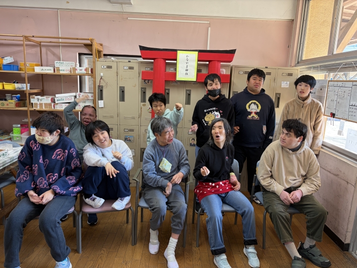 2/23(天皇誕生日)の活動 2月23日(月)は祝日登園日ということで、各班それぞれが趣向をこらした企画を考えました。A班は佐野市内のお店にて焼きそばと佐野名物の「いもフライ」を購入し、近くの公園にてランチをしました。とても美味しかったようで、完食する人もいました。B班は写真フレームを作成し、利用者自身で選んだシールを貼りました。C班は、尾島東照宮へ外出し、満開の梅を見に行ってきました。外出した班は天候にも恵まれ、その他の班も利用者さんと楽しい時間を過ごしました。 焼きそば完食!美味しかった! 焼きそばもいもフライも美味しい! 写真フレーム完成! 顔出しパネルで「ハイ!チーズ!」